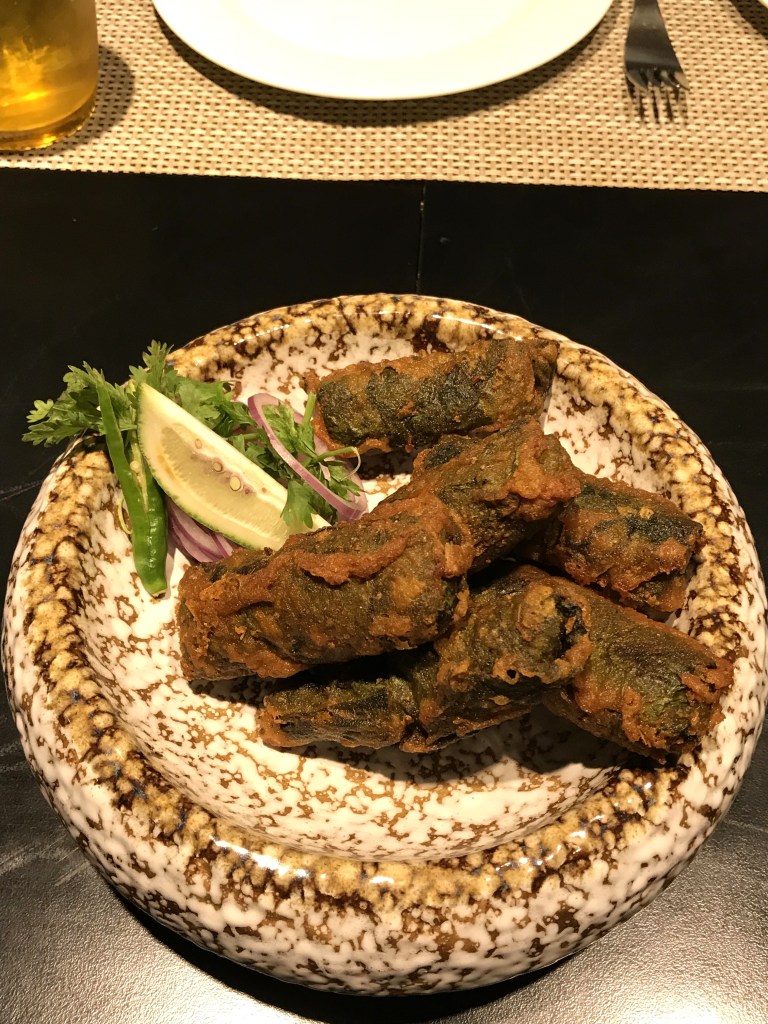 Bottle gourd leaves stuffed with grated coconut, mustard, green chillies and dipped into a thin batter and deep fried. The strong aroma and pungent taste of the mustard are very well balanced with the grated coconut.
