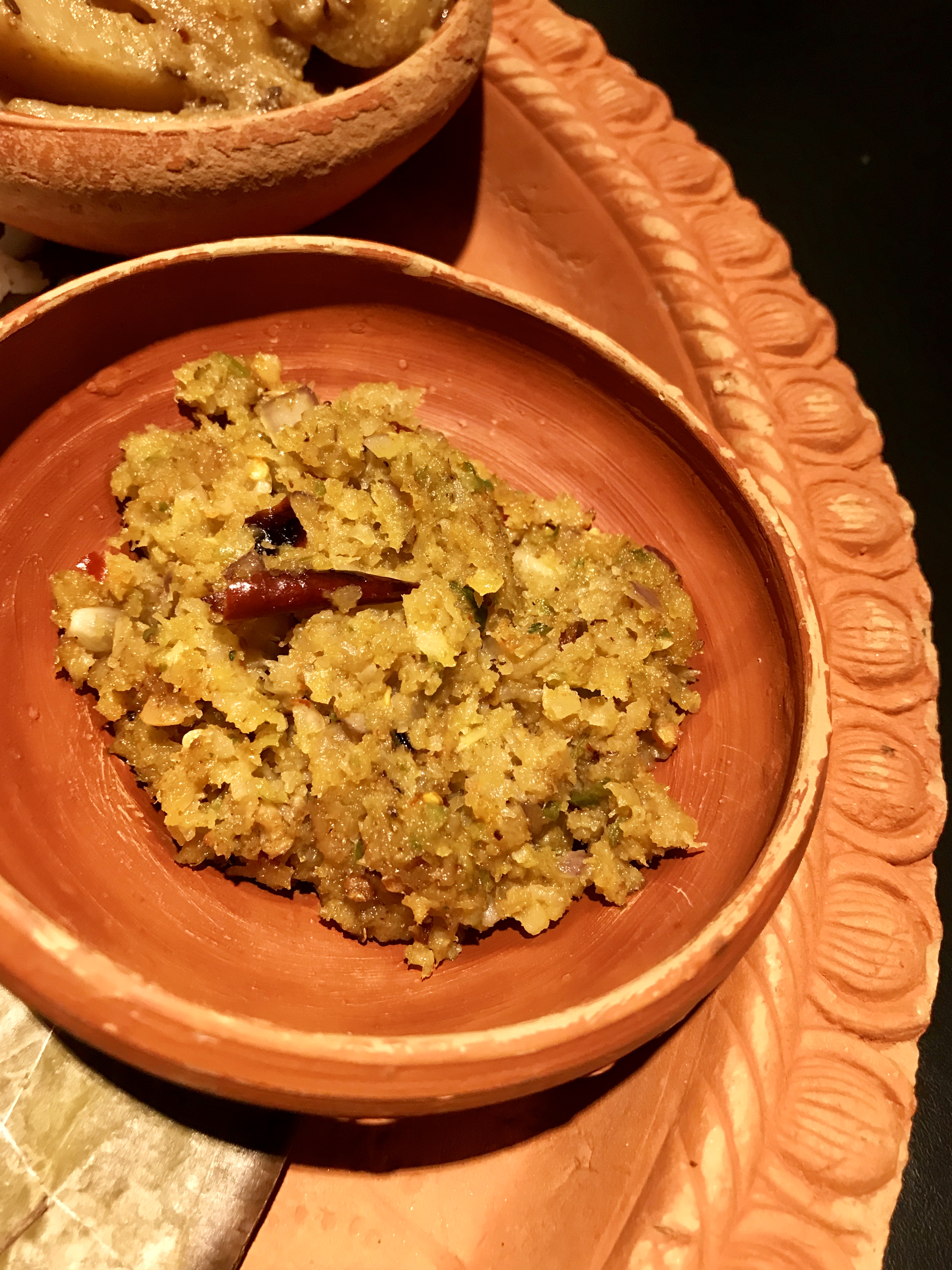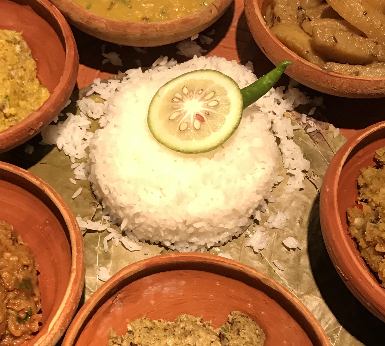 Its the ‘Vorta’ platter or thali served in handcrafted clay utensils (matir thala) with the food laid on the bed of banana leaf that is not only eye-soothing but enhances the flavour.
