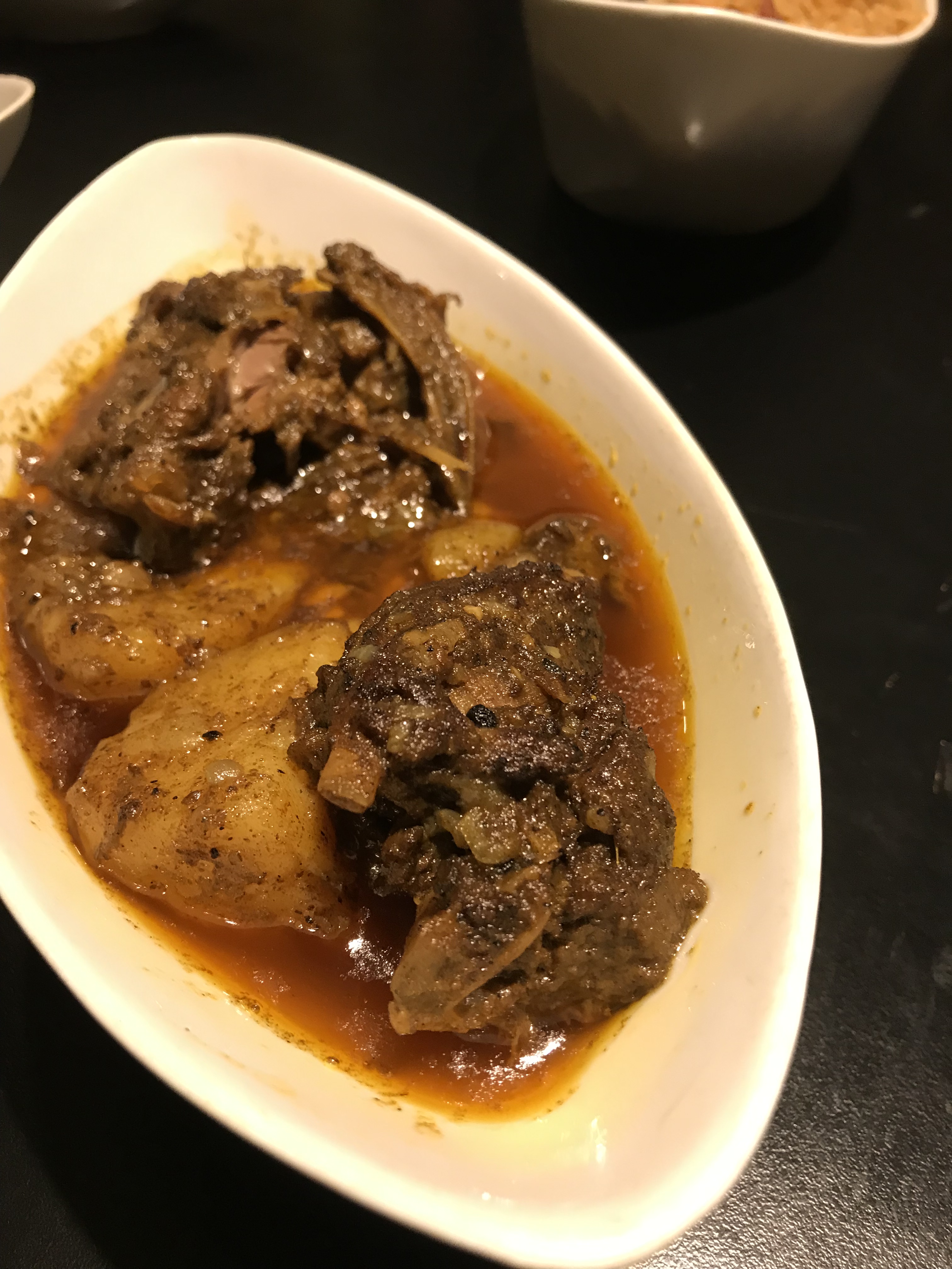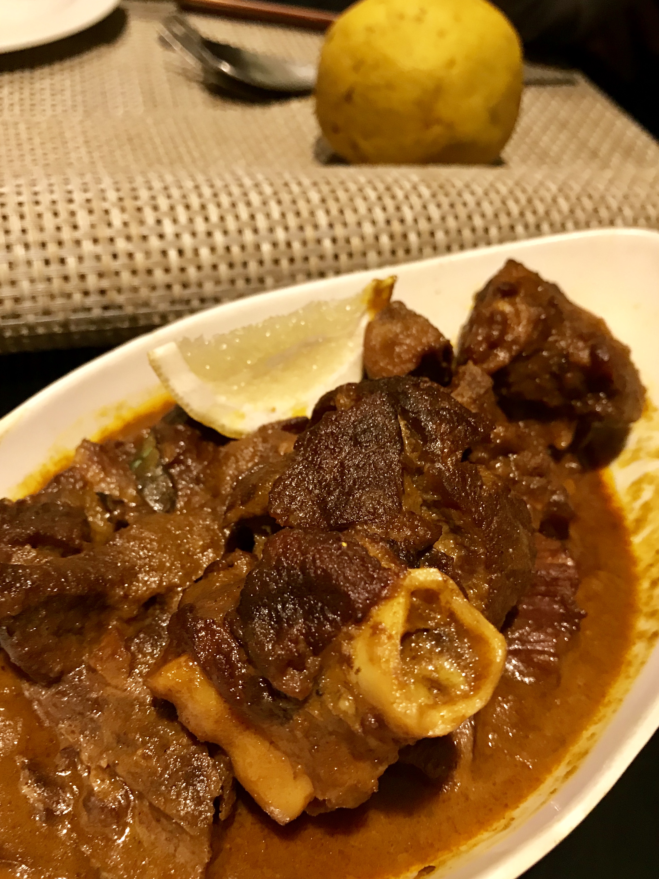 A traditional Sylheti dish. Shatkora – a semi-wild citrus fruit used commonly in Bangladeshi cuisine of the Sylhet region. Thin slices of the fruit simmered with meat and other spices in the gravy that makes this dish a quintessential one. The mild bitter sour taste of this unique & aromatic citrus fruit is very well balanced with medium hot gravy which is very comforting to the palate with