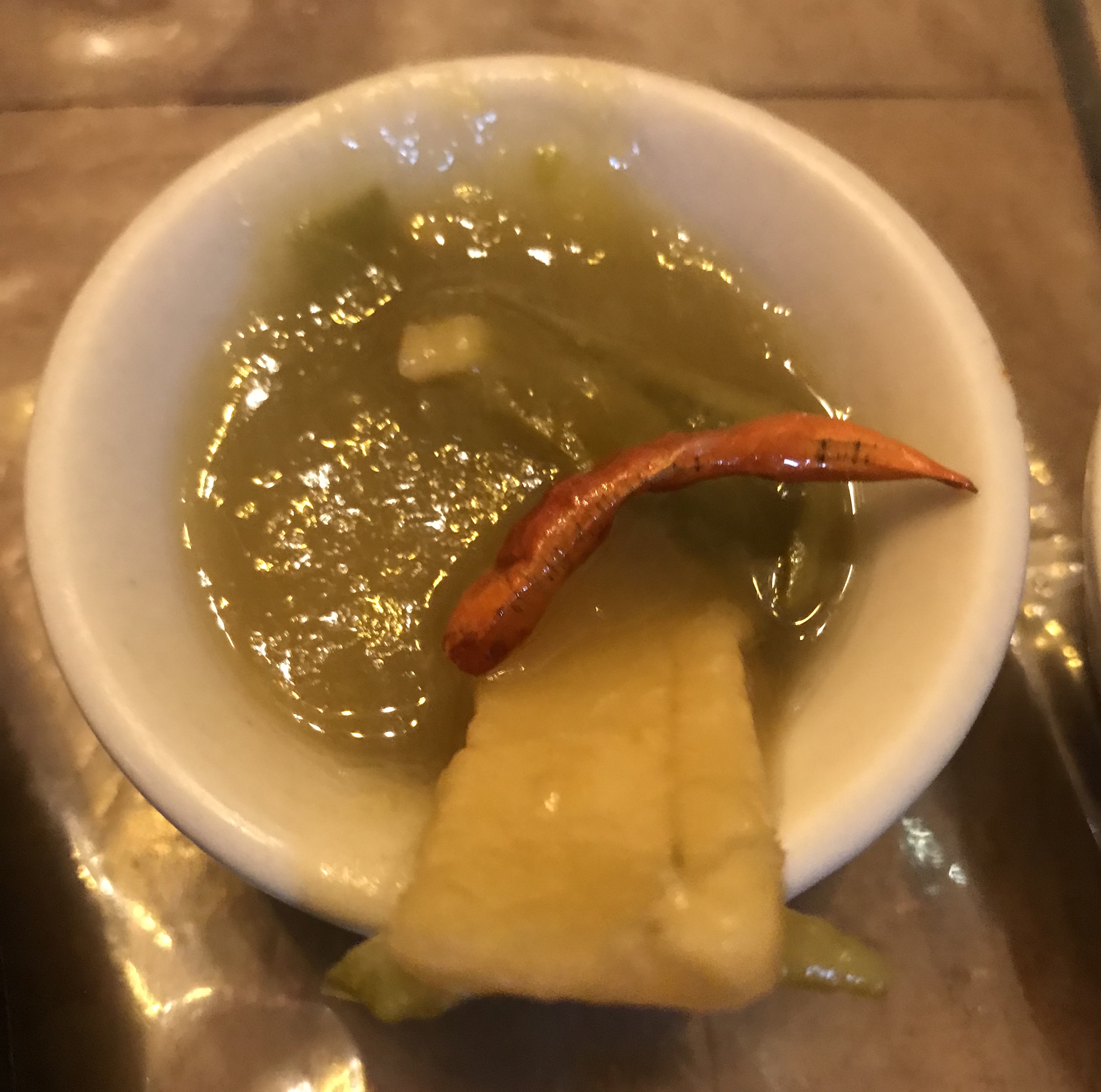 The journey started with a ‘mouth amused’ (cleanser) – prawn cocktail sauce studded with a grape.