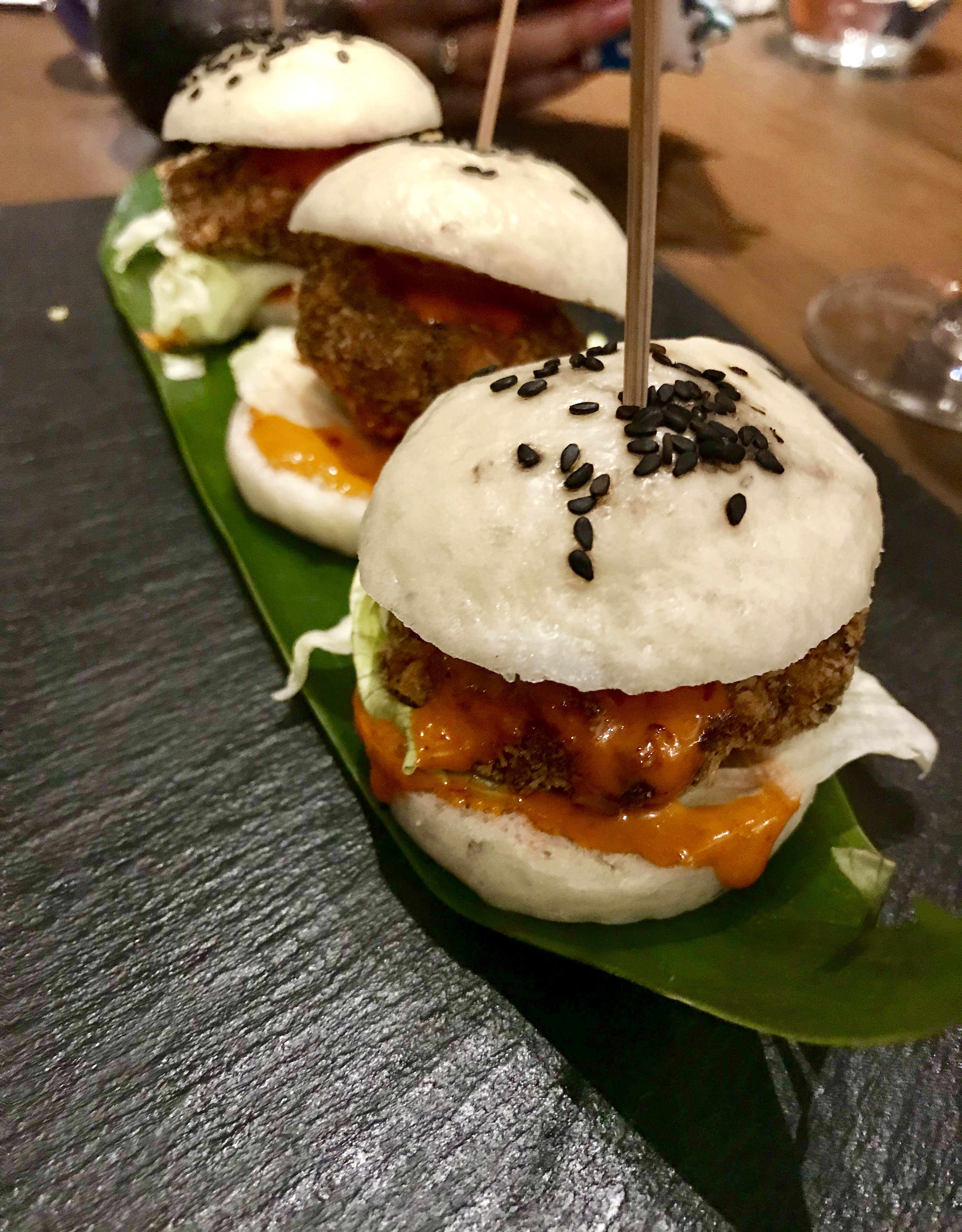 Lobster meat lightly tossed in hot Sriracha, a Southeast Asian-style sun-ripened chilles-garlic delectable sauce served on toasted sliders. Very elegant giving a kick to your taste buds due to the hotness of the sauce.