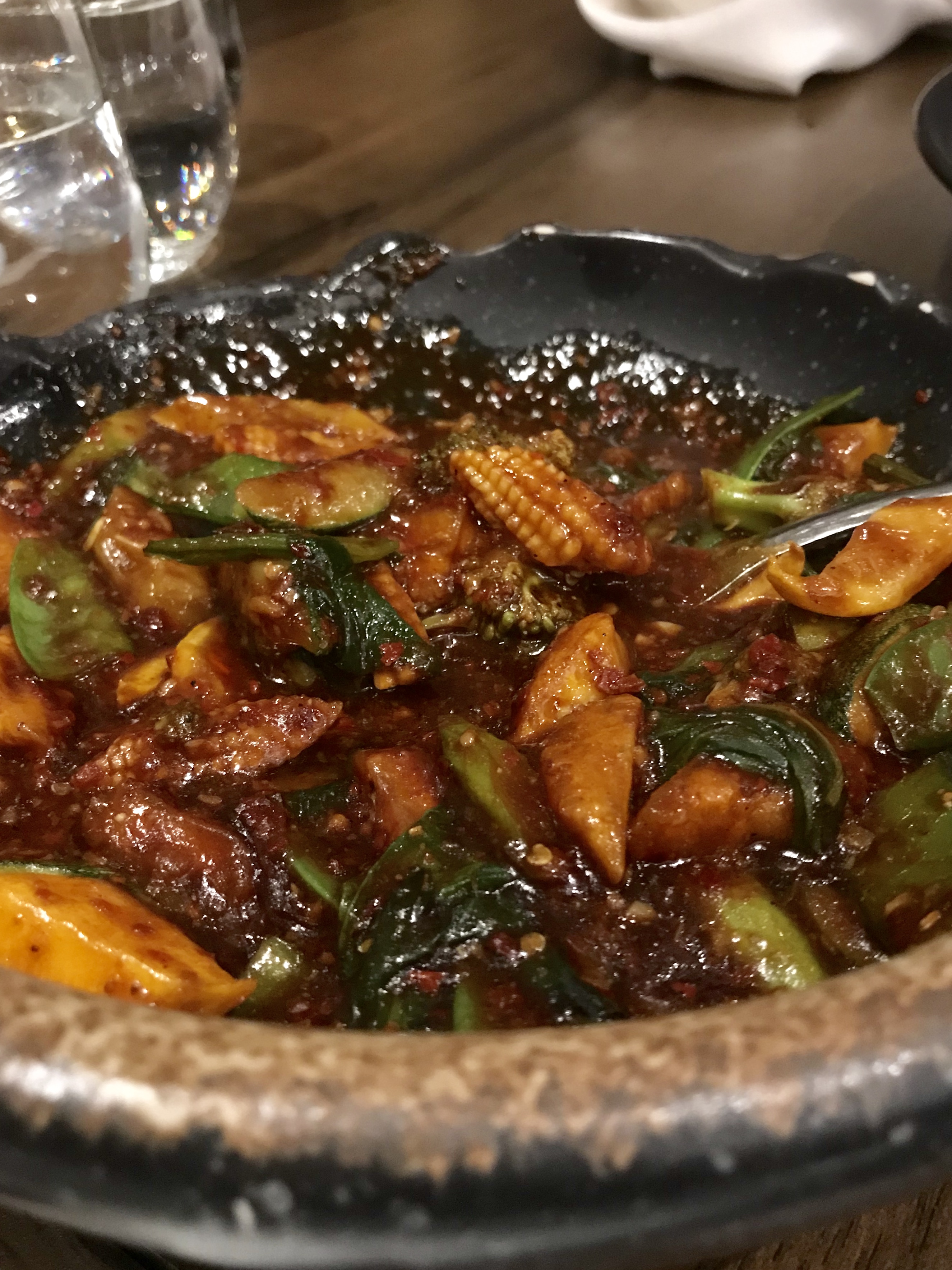Crispy colourful veggies tossed in the spicy, oily Chinese Mala sauce which consists of Sichuan peppercorn, chilli pepper and various spices simmered with oil.