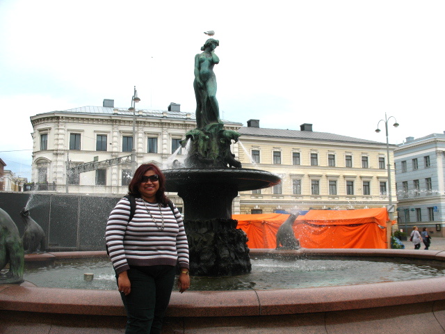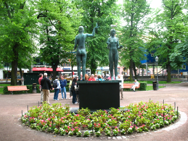 The fountain with a female figure ringed by four sea lions sculpted by Ville Vallgren in 1906 in Paris, and erected at the Market Square in 1908 and a centrepiece for all celebrations.