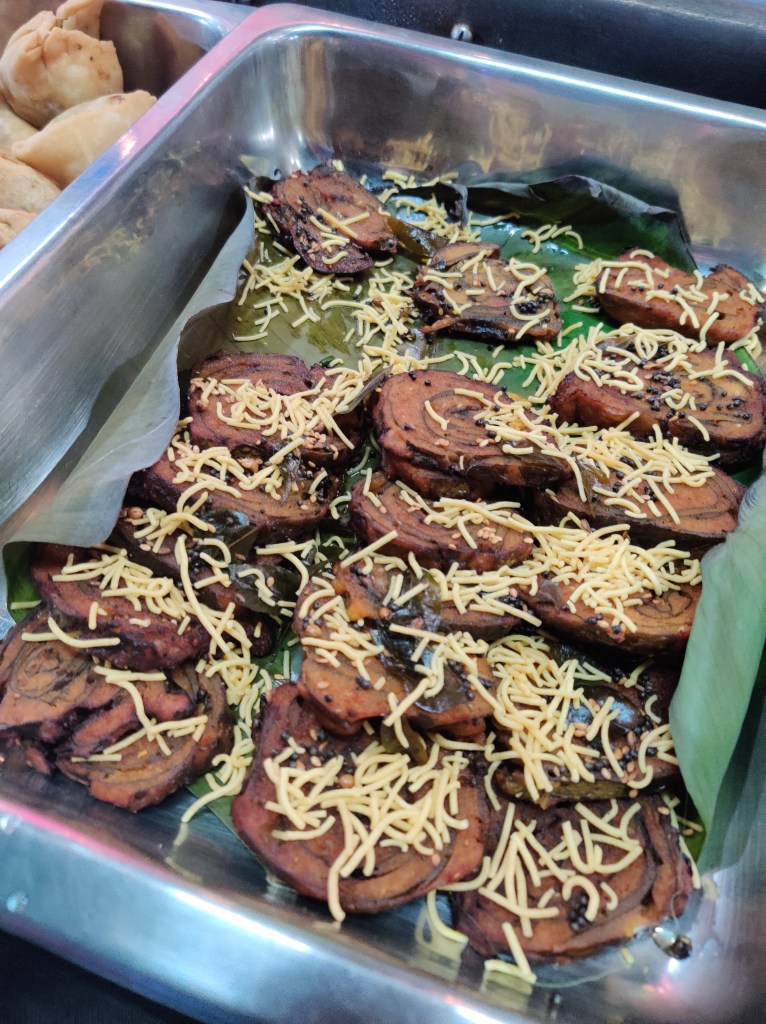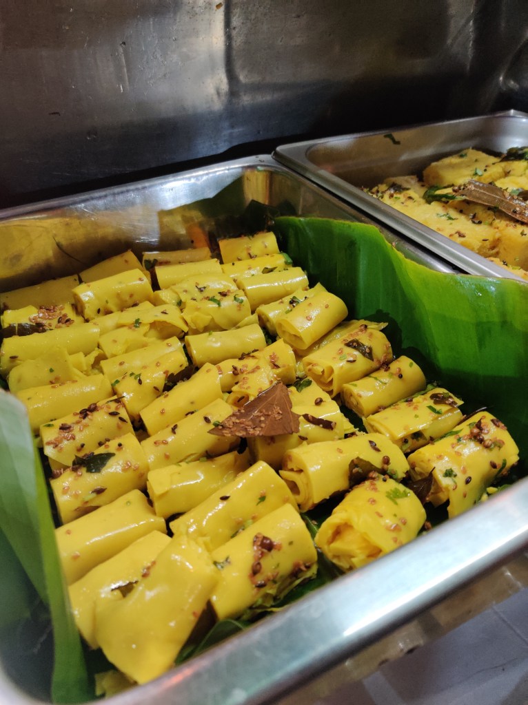 The high nutritional breakfast – Dhokla, steamed cake healthy snack usually made with a fermented batter of rice and chickpeas flour (besan) graced with tadka and the staple of Gujaratis – Dudhi Muthia (vegan steamed dumplings ) made from chickpea flour, methi, other spices are always unique in their own way.