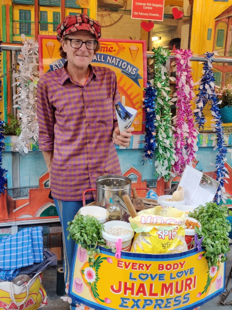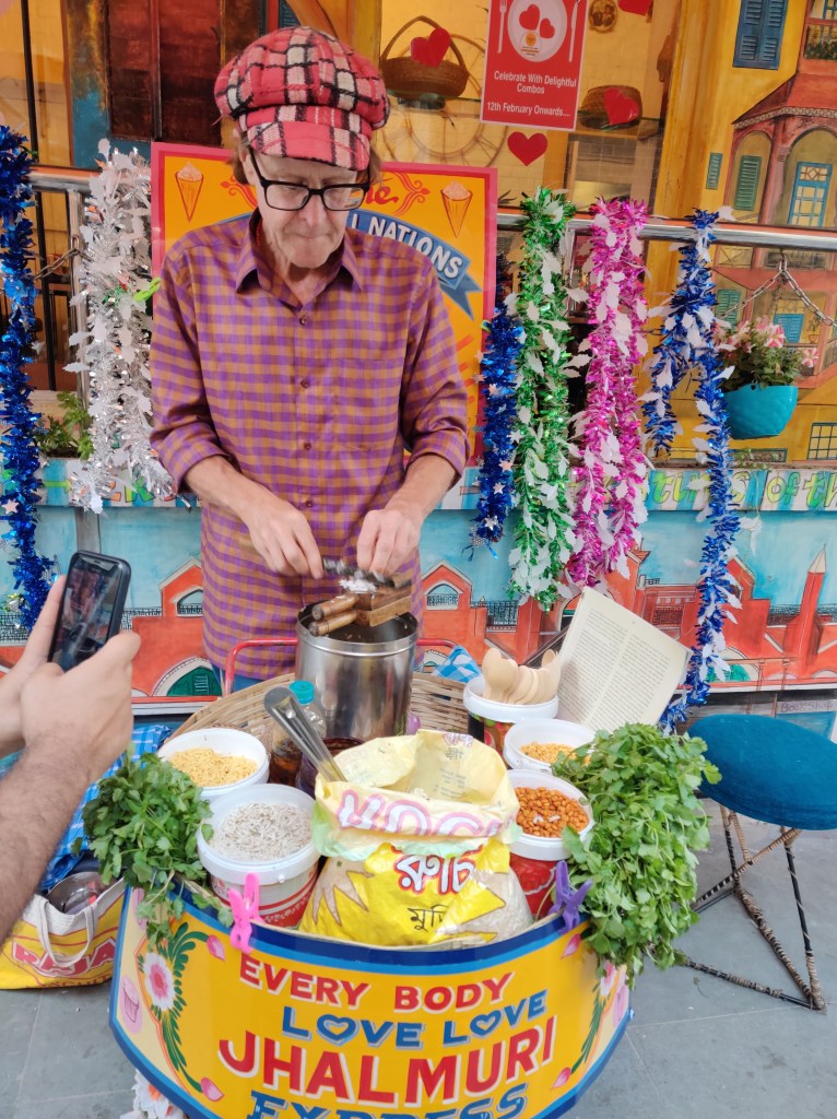 Being fascinated by the supreme chat makers of Kolkata during his visit to the charming city for a film shoot, decades ago, Angus whipped up the magic in his mobile van flagged as ‘Everybody Love Love JhalMuri Express’.