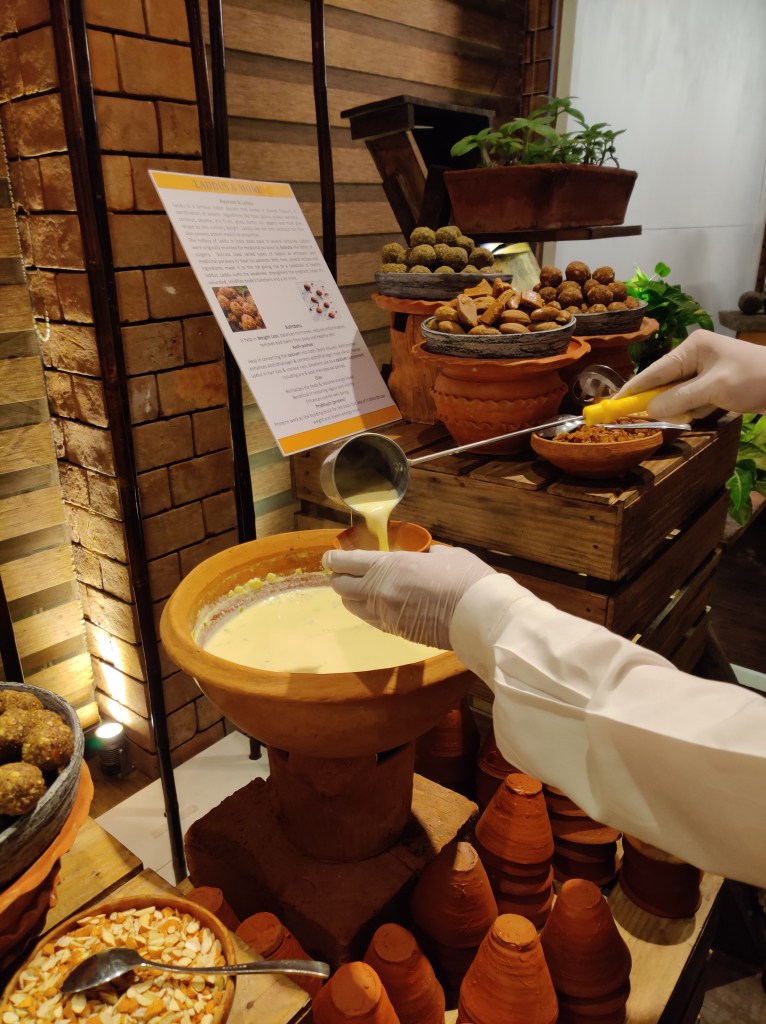 Finally, some immunity-boosting ingredients in the dessert spread is really impressive. The dessert recipes incorporated dates to fight cancer, heart diseases; camphor to relieve pain and respiratory problem; bay leaf for proper digestion; panchamrit for betterment memory; red rice to restrict from ageing; palm jaggery to fight against cold.