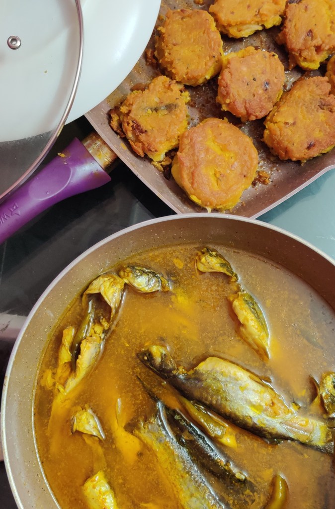 Bhetki Fish Head Curry, Ladies Finger Curry