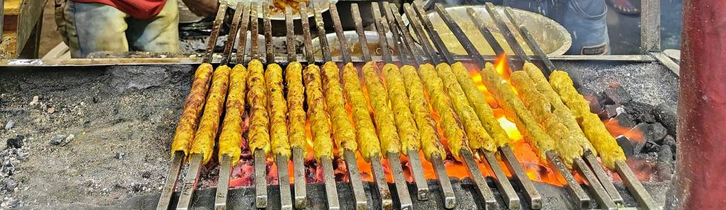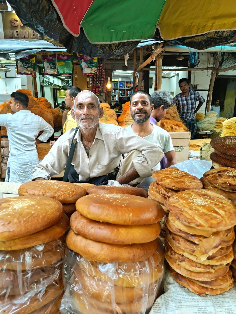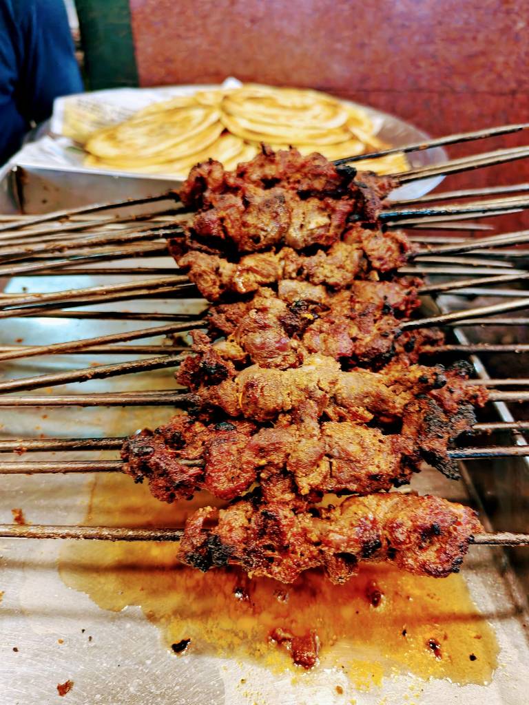 Pair the gravy items or kebabs with the saffron and cardamom flavoured freshly baked traditional sweet flat-bread and further softened in milk i.e. Sheermal, Perisian origin available on the street side stalls.